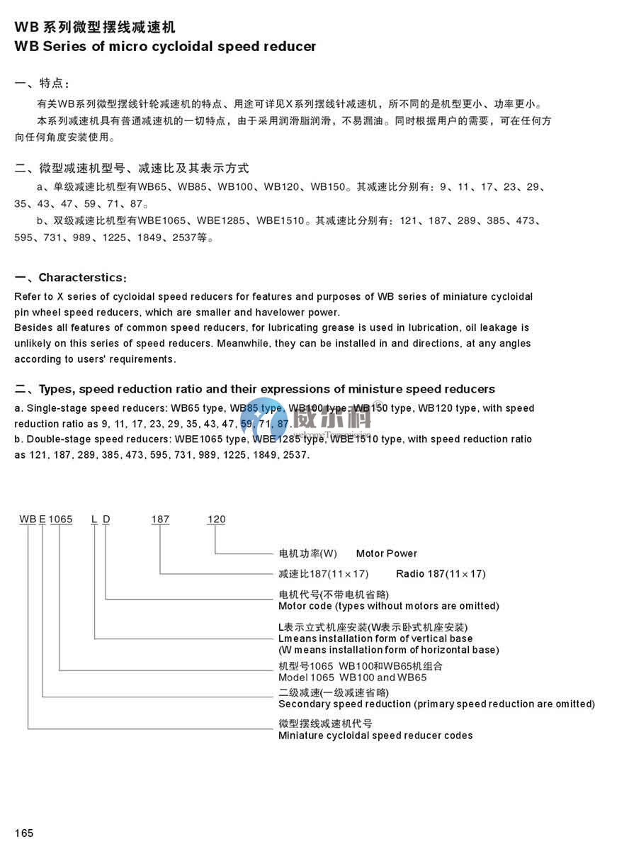 1、單級(jí)減速機(jī)速比機(jī)型有WB65型、WB85型、WB100型、WB120型、WB150型;