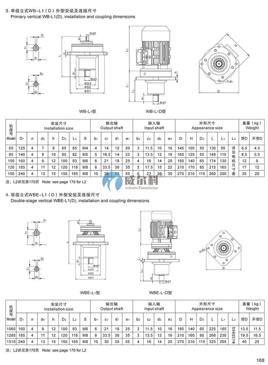 2、雙級(jí)減速比機(jī)型有WBE1065型、WBE1285、WBE1510型;