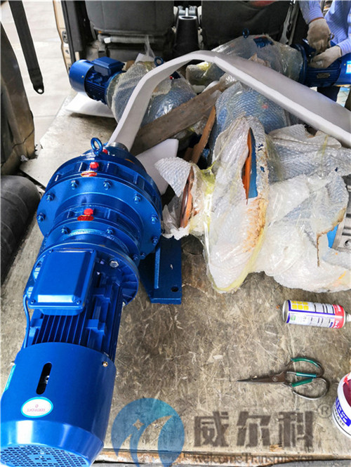 向我司采購擺線針輪減速機 配套剎車電機7臺,具體型號是XWED74-320-YEJ2.2 5臺 XWED63-187-YEJ1.5 2臺,上圖為我司物流部門人員簡單打包,裝配電機,隨后送到客戶工廠。窯爐設備專用減速機就選威爾科。